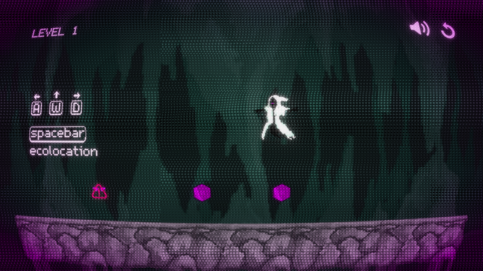 You are a Bat. Wings torn, chased by the blind monster “Murmurai”S and separated from your colony. unable to fly and see in the dark, you must rely on your feet and echolocation.